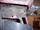 Danach wird die hintere innere Endschalld?mpferhalterung weg geschraubt. Als Tipp: Das ganze vorher gut mit WD40 einspr?hen. Und die schrauben mit viel Gef?hl l?sen!! Jetzt wird aus dem Montagesatz die 5mm starke B?chse gebraucht. Die kommt auf den Gewindebolzen auf der linken Seite. Au?erdem wird die AHK Grundtr?ger montiert. Eine zweite Person ist hier sehr hilfreich. Die Schrauben noch nicht fest ziehen. Erst Handfest anschrauben, mehr nicht!