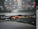 Wenn ein Fahrerairbag vorhanden ist muss w?hrend des Ausbaus die Blende inkl. Scheibe abgenommen werden, diese wird durch 6 Clipse an der Tachoeinheit gehalten. Zus?tzlich wird sie noch von hinten durch eine 10er Torx-Schraube gehalten. Diese befindet sich genau mittig - von vorn gesehen direkt ?ber der STOP-Leuchte.