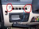 Links unten im Fahrerfu?raum bei der L?ftungsf?hrung die 3 markierten Schrauben raus schrauben. Die Verkleidung weg nehmen und die schwarze L?ftungsf?hrung darunter auch raus ziehen.