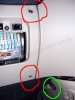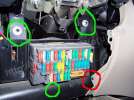 Rechts vom Sicherungskasten die 2 Schrauben in den rot markierten kreisen l?sen.