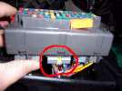 Jetzt den Sicherungskasten selber aus der Halterung nehmen. Daf?r links am Sicherungskasten die rote Nase raus ziehen (ca 5mm) und den Sicherungskasten nach links und dann raus dr?cken.