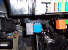 Nun wird der Halter mit dem Sicherungskasten wieder eingebaut. Den Nachr?stkabelsatz habe ich dabei hinten scheuerfrei so verlegt, da? ich den Sockel vom Nachr?stsatz unter dem Sicherungskasten neben einem Relaise mit dem Kabelbinder fest machen konnte.