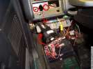 8. Nun ins Auto setzen (Richtungen jetzt aus Fahrersicht) und die Blende der L?ftung links entfernen. Dazu nehmt ihr das Brecheisen den Breiten Schlitzschrauber und hebelt Sie Vorsichtig heraus sammt darinbefindlichem drehregler, da man den mit der Hand eigentlich nicht abbekommt. Vorsicht der schie?t los wenn Ihr die Blende hebelt. Verkrazt euch dabei nicht das Amaturenbrett, Tuch darunter. (gestrichelte Linie)