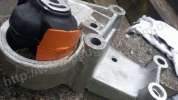 Der Gummi im Motorhalter war sehr stark eingerissen, was ein Zeichen dafür ist das der Gummi unter dem Halter defekt ist.