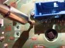Wenn Du den Schritt "Entfernen der Kontaktleiste" nicht glamur?s beendet hast und Dir ein Platikclip fehlt, kannst Du das ganze nach dem Aufstecken der Klammer auch einfach wieder mit einem L?tkolben verschweissen, das sieht dann so aus: