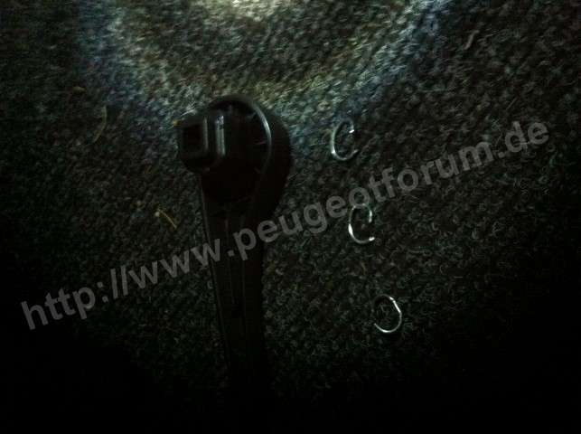 Der Sitz muss nicht ausgebaut werden. Die Arbeiten werden von der Rueckbank durchgefuehrt. Die Kartentasche muss nicht abgebaut werden, auch wenn die Plastikclipse sehr verlockend sind. Ebenfalls müssen nicht die Plastikführungen der Kopfstütze (im Sitzpolster) entfernt werden.