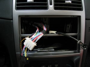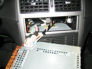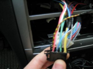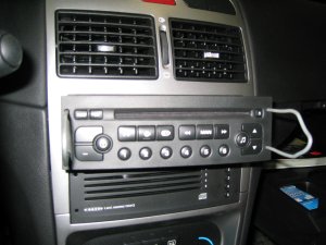 wir beginnen mit dem ausbau des radios (in diesem fall ist es ein peugeot 307 mit werksradio), wir klemmen dort unsere ganzen spannungsversorgungen an. dazu benötigt man diese beiden klammern die ihr auf dem bild seht. einfach in die vorhandenen löcher stecken und leicht nach außen drücken und das radio vorsichtig rausziehen. dabei darauf achten, das keine kabel verklemmt sind!
