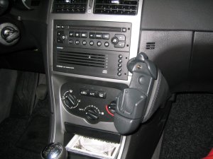 hier im peugeot 307 haben wir einen schönen platz für die blackbox der freisprecheinrichtung. einfach hinter die steuerung der klimaanlage legen bzw mit schaumstoff einklemmen. in anderen modellen geht das meistens nicht. in dem fall kann man die box hinterm handschuhfach oder in der mittelkonsole verstecken.