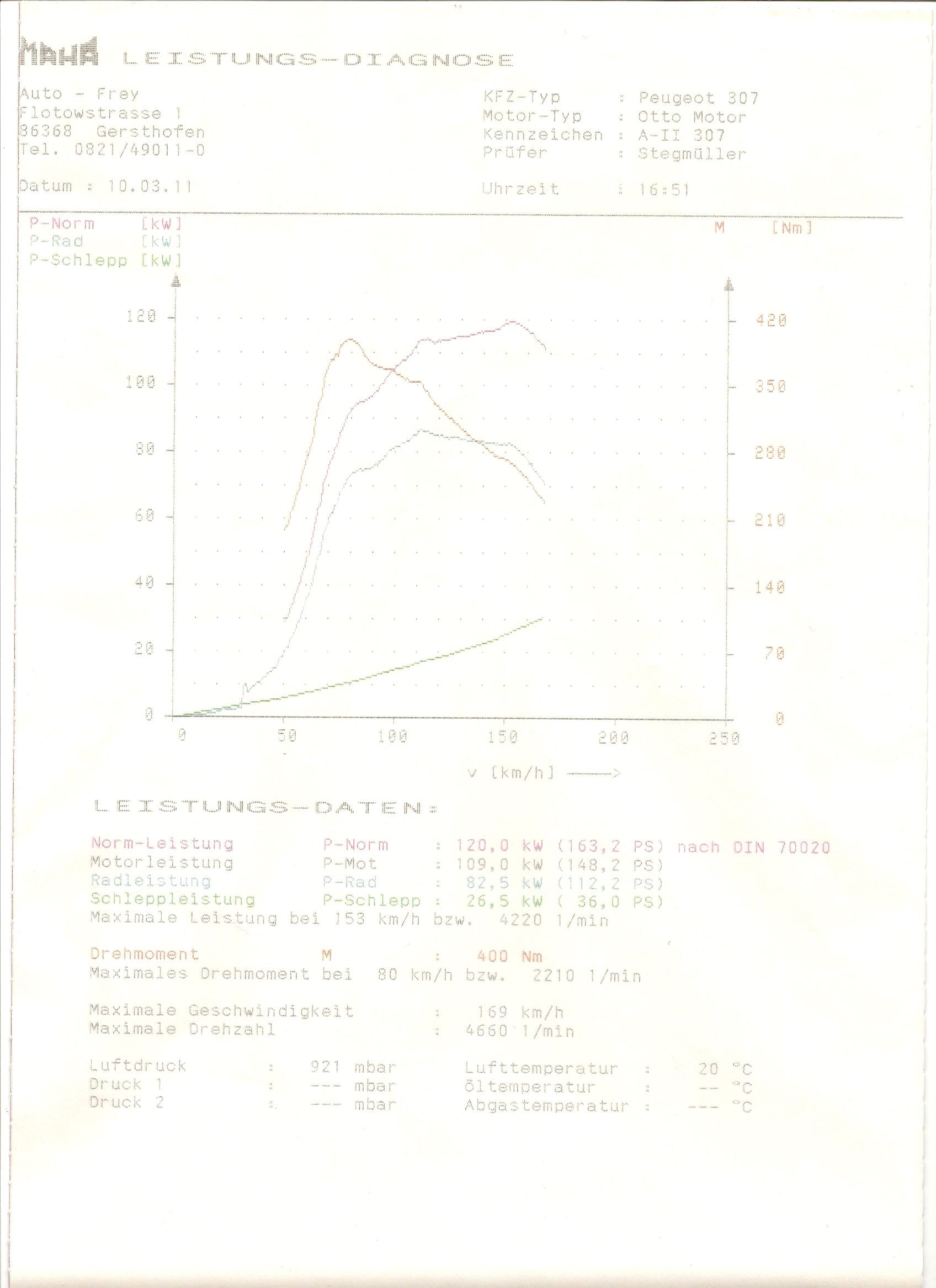 also ich war am Mittwochch bei Clemens...die fahrt bis dorthin war angenehm(Augsburg-Ulm), toller sonniger Tag. Ich wurde herzlich begrüßt und durfte mich einwenig umsehen...alle sind dort wirklich sehr nett, ist übrigens ein Familienbetrieb und das merkt man absolut, die haben sich echt um mich gekümmert und haben mich und meine freundin für die Abstimmungszeit in die Stadt gefahren und wieder abgeholt. Dann habe ich Jürgen Clemens kennengelernt, wirklich ein sehr netter und unkomplizierter Mensch...er hat mir einwenig was zum ablauf erklärt und wie die Leistungsteigerung zustande kommt...also sind wir gleich auf den Prüfstand gekommen und haben das Auto draufgeschmissen, war Nice zusehen wie er den kleinen rannimmt...der hat dann süße 101kW und 326Nm aus meinem 307 2.0 HDI gedrückt...soweit so gut. Bei der eigentlichen abstimmung war ich nicht dabei(beim Shoppen).So und hier mal das resultat...