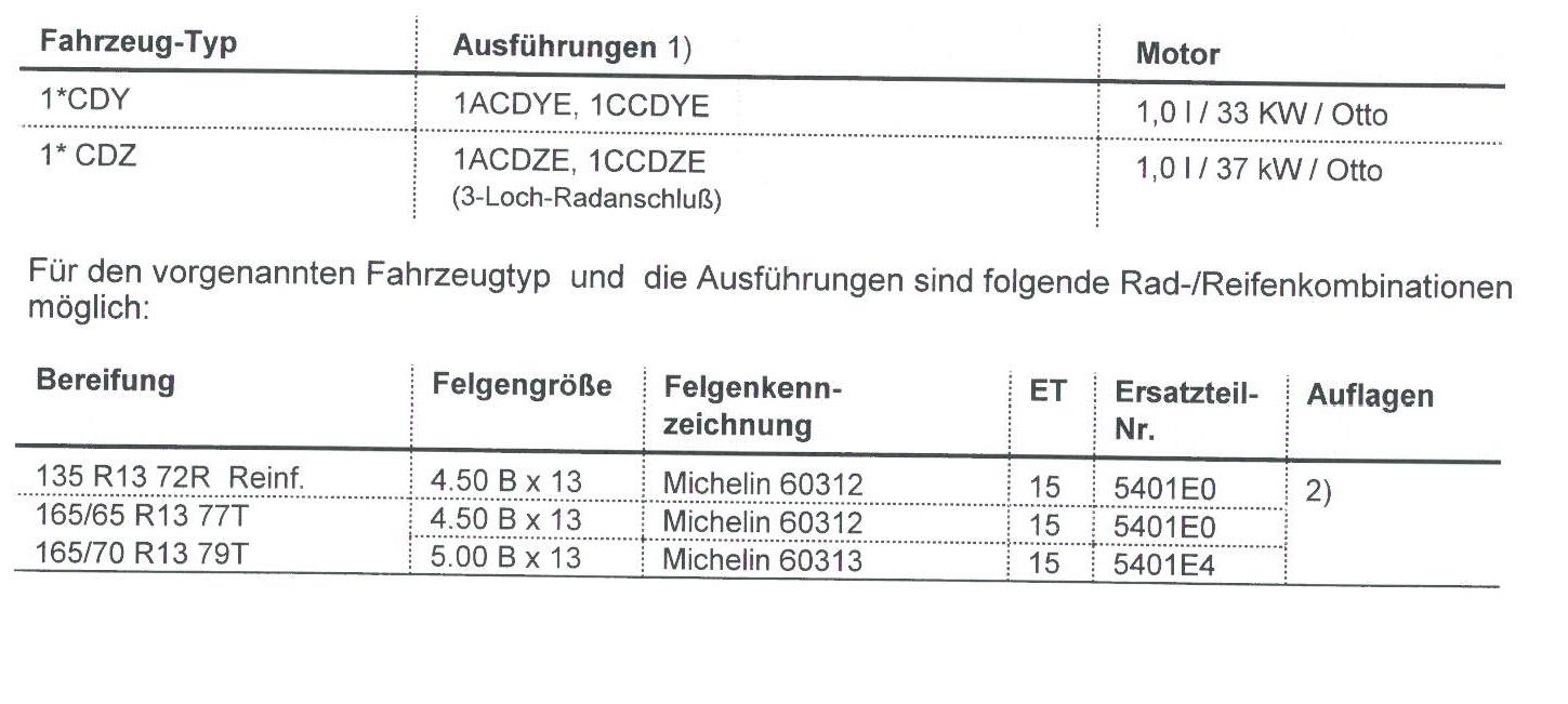 In der komischen tabelle (bild folgt) ist die reifengröße ja Motor abhängig.....meiner ist 33kw...3loch.