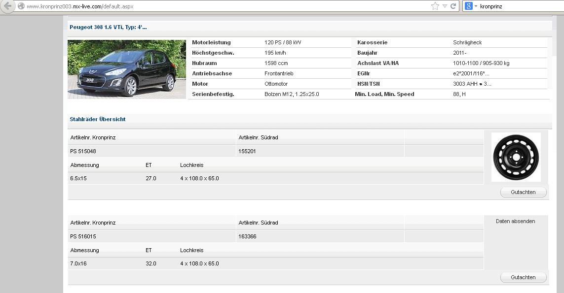 hier ist auch ein gutachten zu der kpz felge http://www.kronprinz-raederport.com/fil ... 516015.pdf