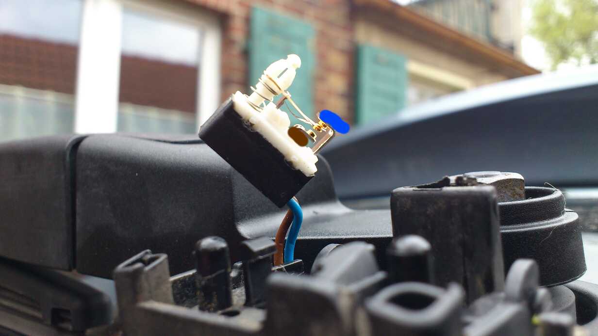 Wo Ich alles wieder zusammen gebaut hatte viel mir auch ein das Ich den Taster mal hätte messen können was da für Spannung anliegt. Was soll da an Spannung drauf sein weil Stromt kommt an Ich habe ja durchgeklingelt von dem Stecker unter der Scheibe an.