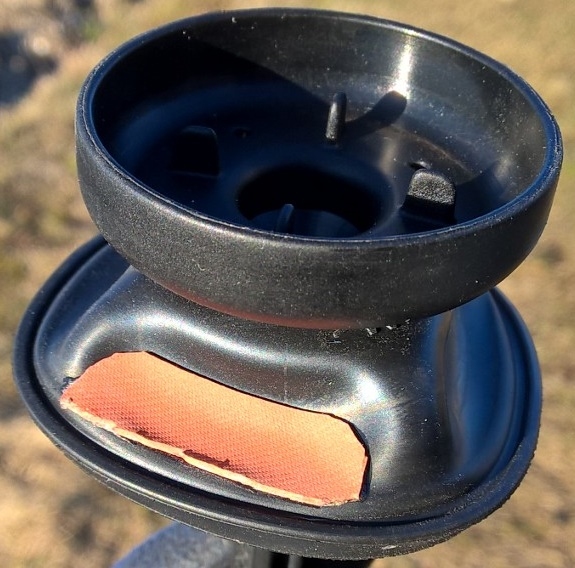5. Zu flickende Stelle vom Gummimembran mit z.B. Spiritus reinigen und wie bei einem Fahrradschlauch flicken. (Ausreichend trocknen lassen!)