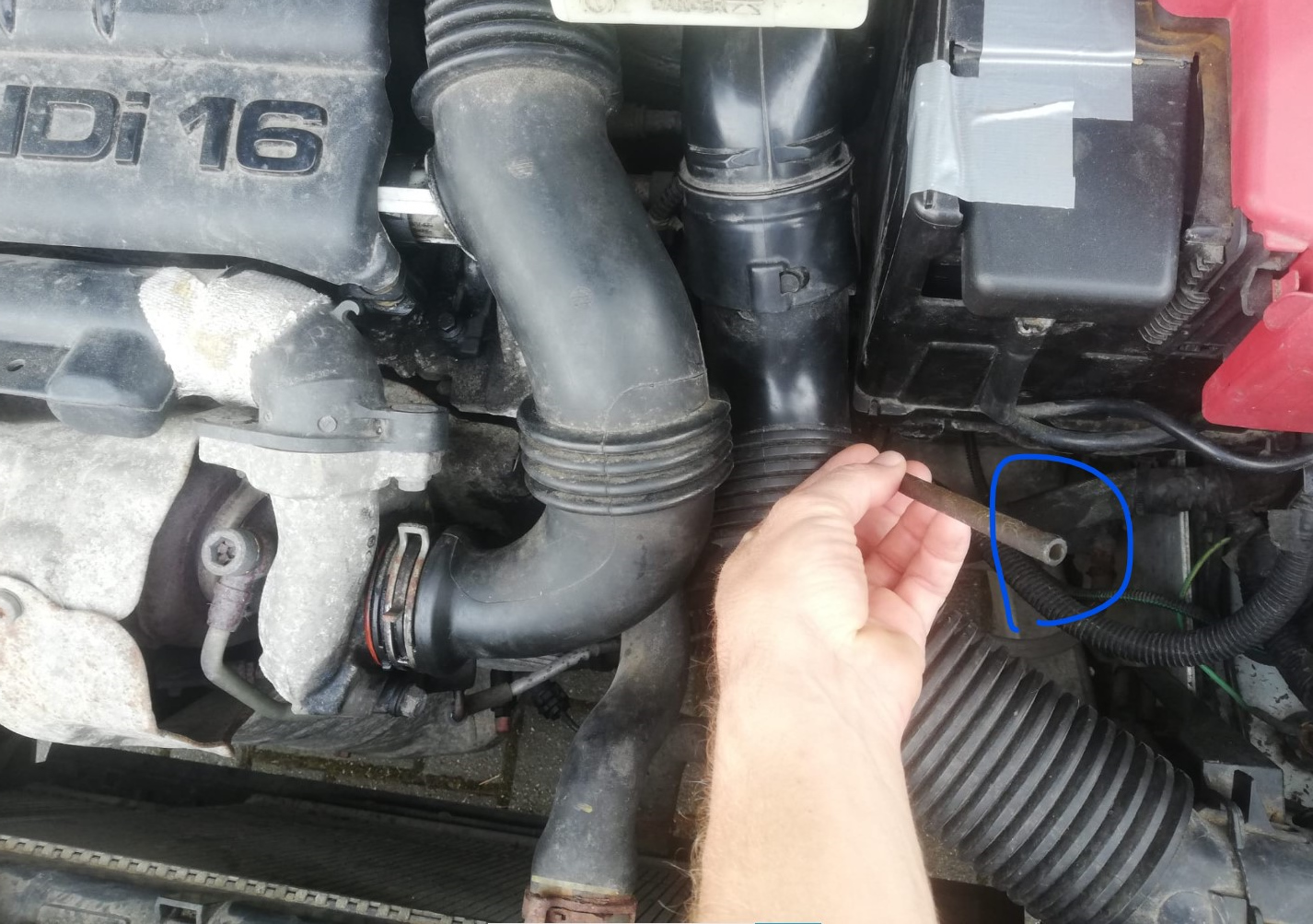 Ich fahre den Wagen seit 7 Jahren und kann mich nur sehr dunkel daran erinnern, dass ich das schon mal vor langer Zeit bemerkt hatte. Nach dem neulichen Bemerken bin ich jedenfalls um die 150km gefahren und alles ist normal – Keine Kühlflüssigkeit- oder Öl-Verluste. Somit scheint sich der Schlauch schon vor einer Weile verselbstständigt zu haben. Nichtsdestotrotz würde ich gerne wissen, was es damit auf sich hat.