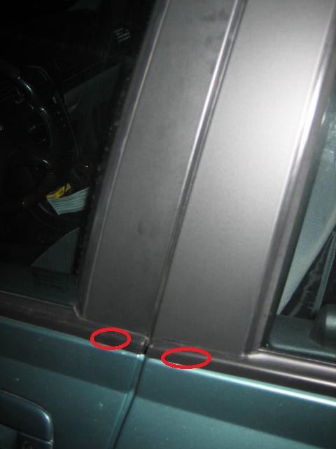 die alte version der dichtungen scheint es nicht mehr zu geben, die waren an den säulen teils geclipst, die jetztigen sind zum schrauben, also mußte ich neue löcher bohren. auf dem bild sieht man wo: