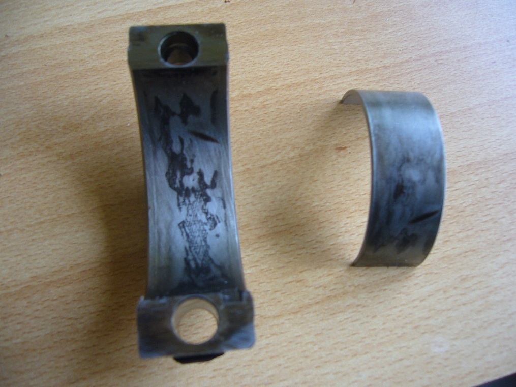 so das zeugs is ab und die Lager schauen naja eigentl. noch gut aus.... bis auf ein paar leichte schleifspuren richtung kurbelwelle is nix erkennbar! :D anders schauts allerdings am pleul aus... da isses recht verbrannt und schwarz aber keinerlei riefen o.Ä... :gruebel: is das NORMAL???????