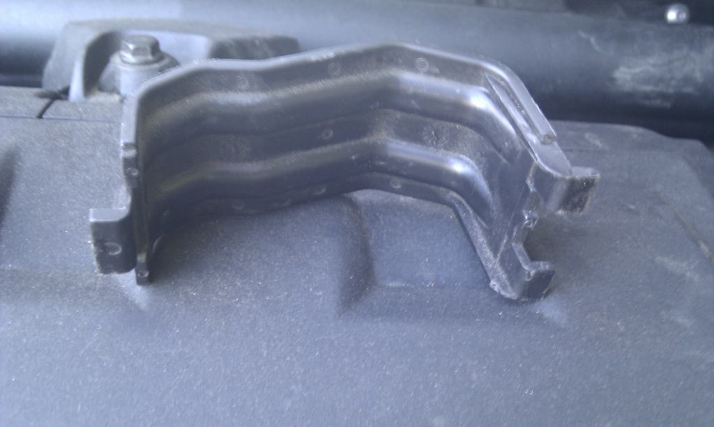 Die Klammer sitzt von vorne am Batteriekasten und "hält" die Kabel fest.