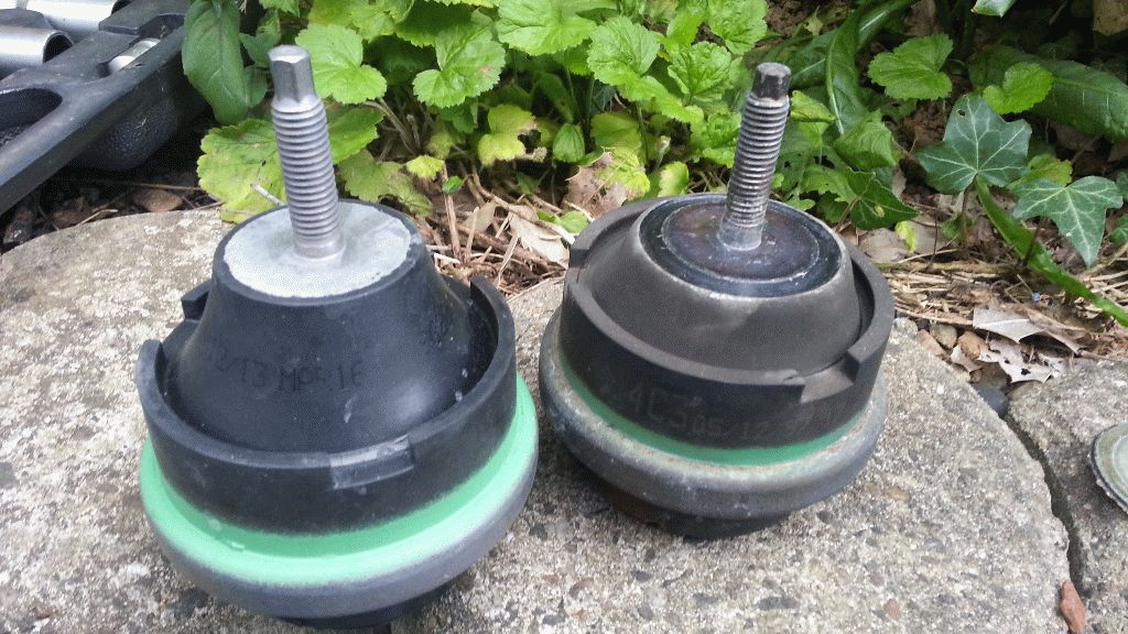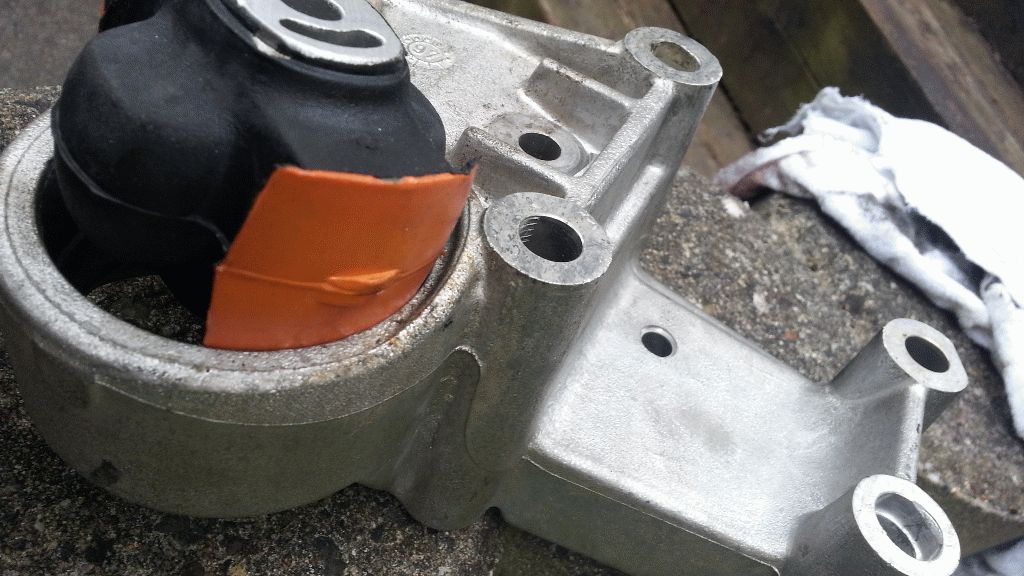 Der Gummi im Motorhalter war sehr stark eingerissen, was ein Zeichen dafür ist das der Gummi unter dem Halter defekt ist.