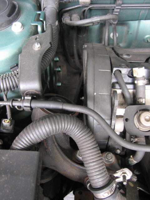 Die Querstrebe nach hinten an den Dom muß man lösen, die vordere Schraube komplett, die hintere kann man aber nicht komplett rausziehen.