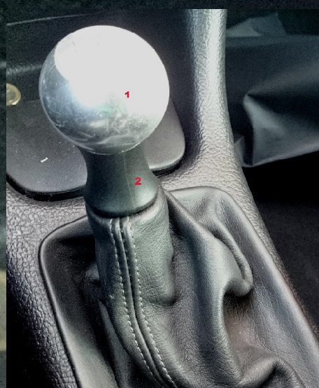 1) Schaltknauf: Stimmt das, dass zum Lösen der Schaltknauf 90Grad nach rechts gedreht werden muss und anschliessend nur noch kräftig dran gezogen werden muss? -> hier die Frage (siehe Foto) muss isch nur den "Kopf" (auf dem Foto mit Nr. 1 versehen) oder das ganze drehen (also inkl. Nr.2 auf dem Foto) ?