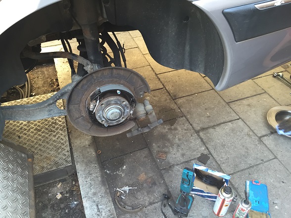 Dann auch nochmal die Handbremse am Nachsteller unter dem Wagen einstellen und ebenso nochmals an den Nachstellern am jeweiligen rad .