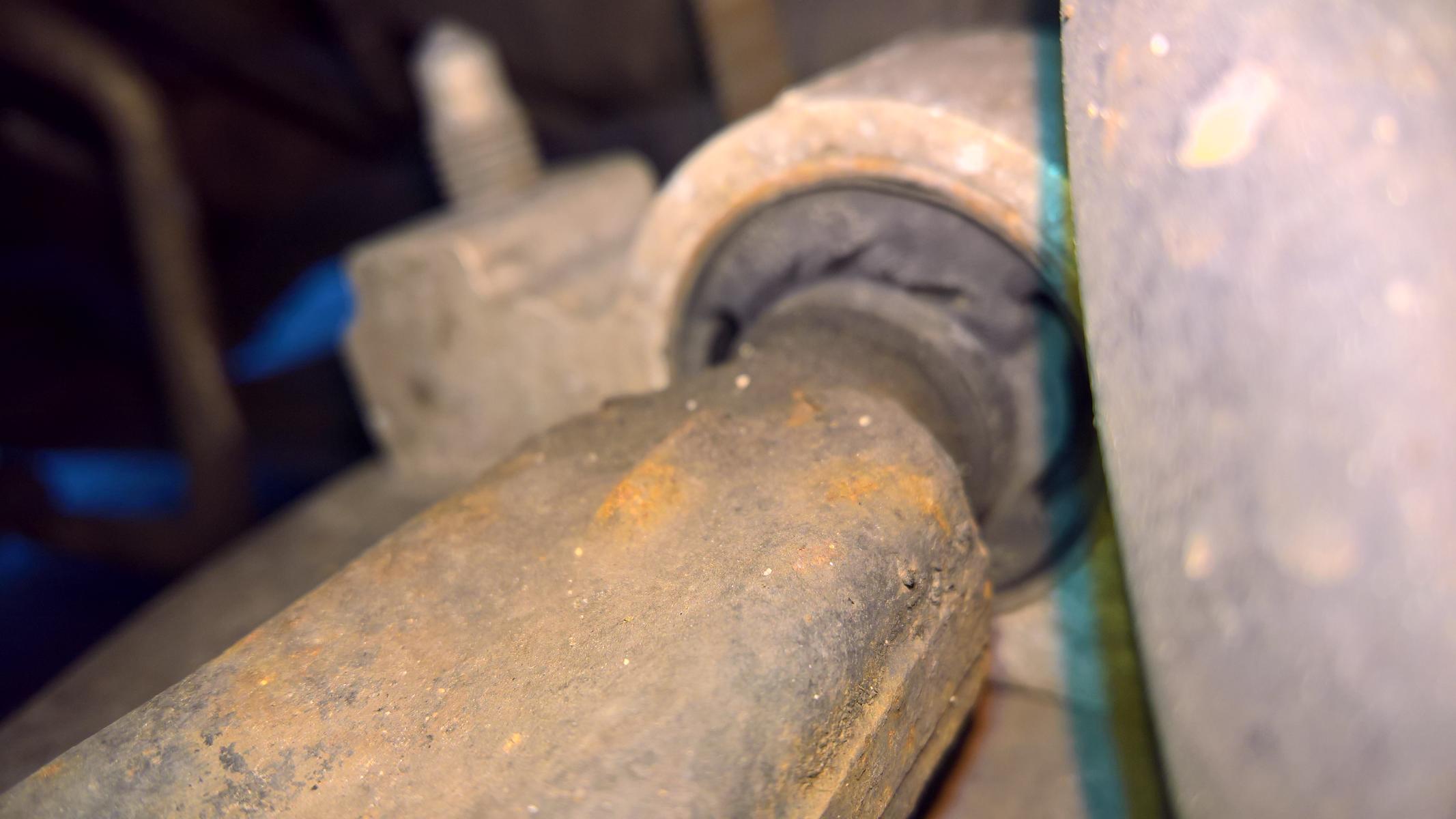 Bei diesen Buchsen soll man peinlich darauf achten das sie im genau derselbe Position am Querlenker kommen als vorher, es sieht auf das Bild so aus das es doch nicht ganz gut gemacht ist, leider.