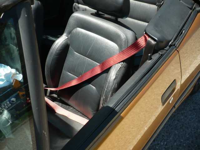 Das Auto selber ist Goldmetallic. Dachte zuerst an braune Gurte, dann fand ich das Beige gut passend, weil es einen leichten Stich ins Gold hat.