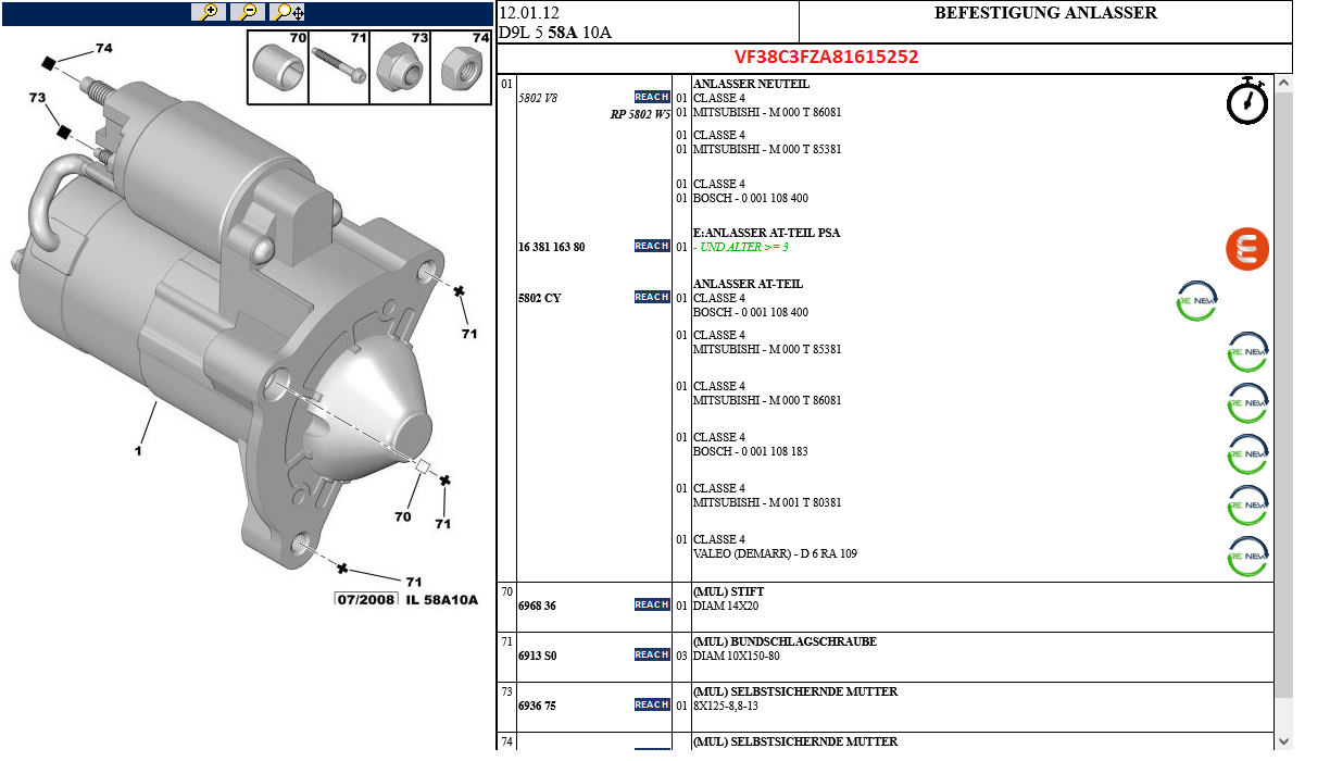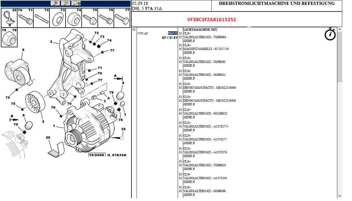 An meinem 3FZ im C8 sind - genau wie auf den Screenshots aufgelistet - ein Mitsubishi-Anlasser und eine Valeo-Lima verbaut.