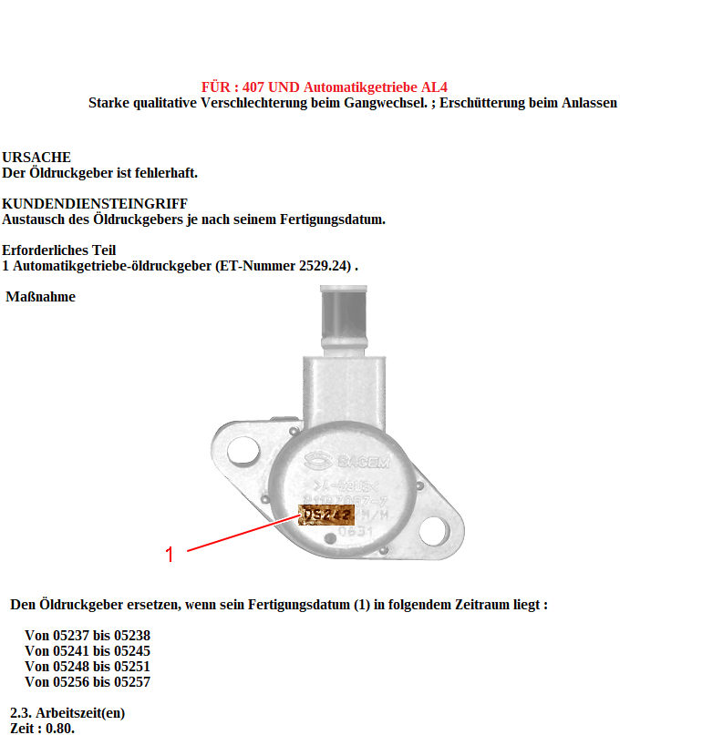 Den Öldruckgeber zu tauschen sieht nicht sehr aufwendig aus, allerdings scheint das größte Problem zu sein, dass beim Entfernen das Getriebeöl ausläuft? Stecker ab, die beiden Schrauben lösen, raus ziehen, in umgekehrter Reihenfolge wieder einbauen.... Wenn da nix auslaufen kann, sollte man das ja easy selber machen können?