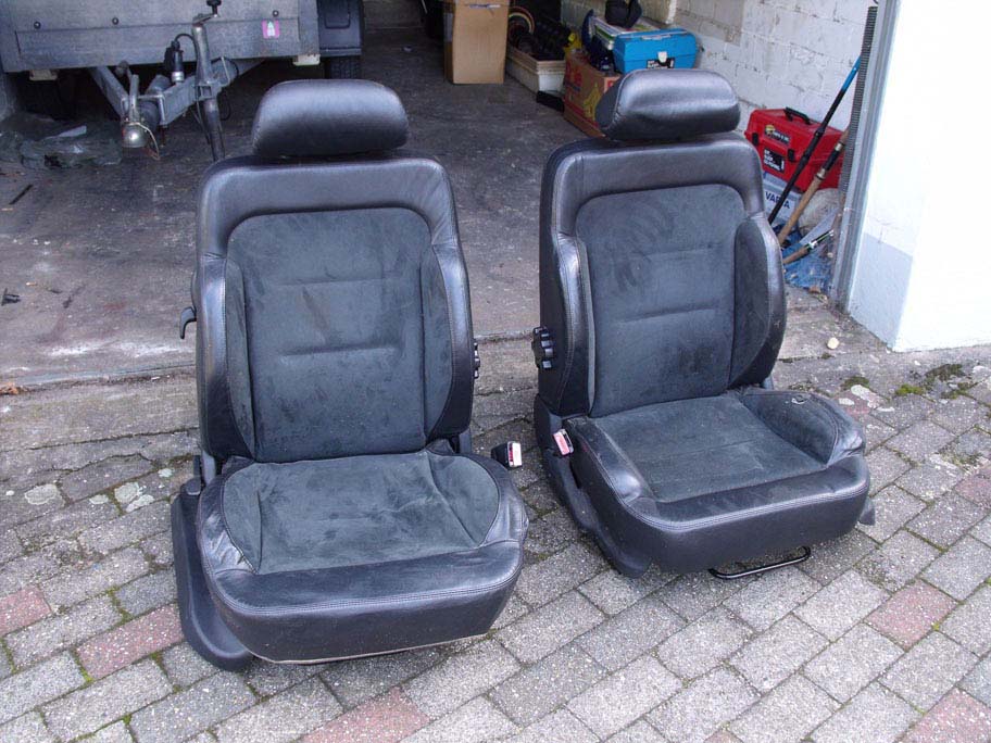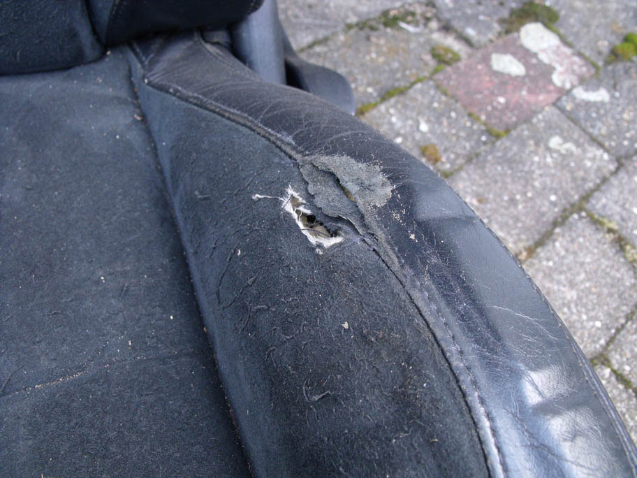 Der Fahrersitz ist an der Einstiegsseite kaputt, wie man auf dem Bild erkennt. Ansonsten sind die Sitze in einem guten Zustand, müssten nur gereinigt werden. Die Türverkleidungen habe ich leider nicht mehr und am Beifahrersitz fehlt die Plastikabdeckung.