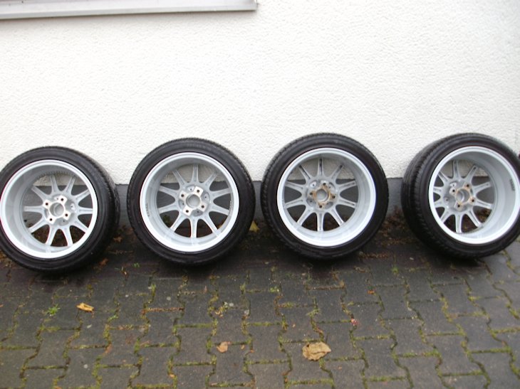 An der Hinterachse hatte ich Spurverbreiterungen mit 10 mm pro Seite montiert , und vorne ist mein Cabrio ca 50 mm tiefer - die Räder passten ohne Anpassung unter die Karosserie und haben nicht gestreift.Radschrauben und Gutachten sind natürlich dabei.