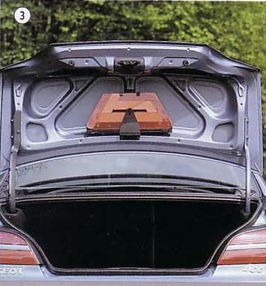 Also, anders als auf dem Foto - das ist nämlich eine 406 Limo - habe ich bei meinem Serie 2-Coupé auch eine verkleidete Kofferraumklappe. Aber eine serienmäßige "Aufnahme" für das Warndreieck habe ich da nicht. :hilflos: