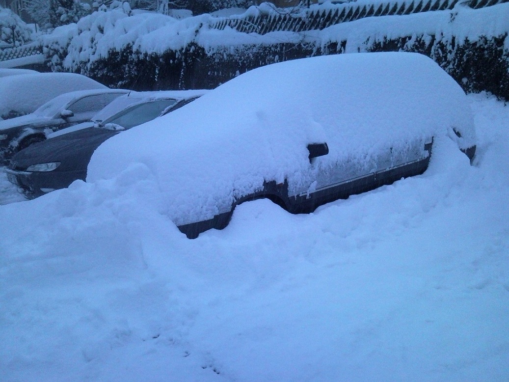 so nach 21 stunden (arbeit und freunde besuchen) nach hause gekommen und ich werde hier von 15-20cm neuschnee erwartet, zu den 15cm bestehenden noch daz, alle autos mit weißer haube und wo kein auto steht/stand liegt schnee in solchen mengen das parken unmöglich ist, hab ne lücke im schnee gefunden, die war nur etwas zu klein so das ich um 1 in der nacht mir erst einen parkplatz freischaufeln musste.