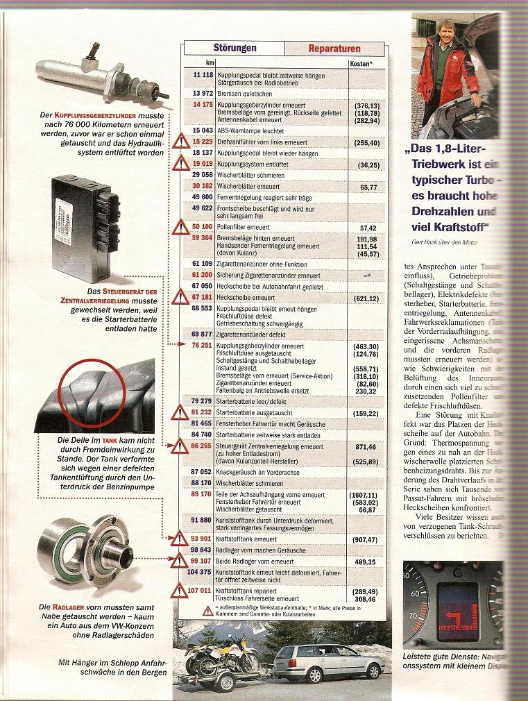 der artikel stammt von einem dauertestabschluß der ams aus den jahre 1999, man beachte die plazierung des 406 und staune über die lange mängelliste des passat!