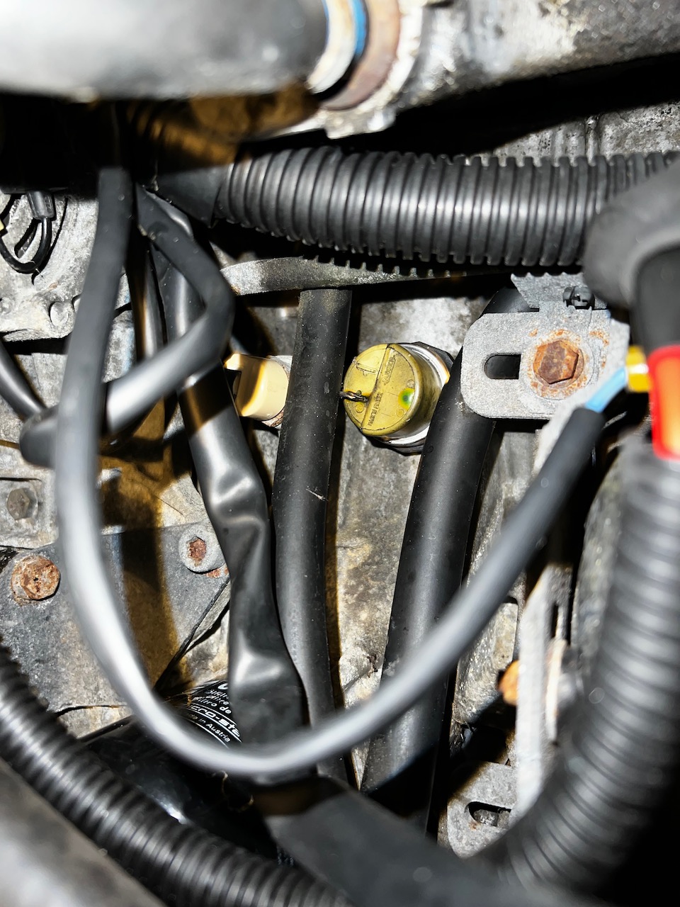 Vorne am Block sind wohl 2 Sensoren für den Ölkreislauf, einer ist gar nicht belegt bei mir, ist das evtl. für Zusatzinstrument/Öltemperatur?