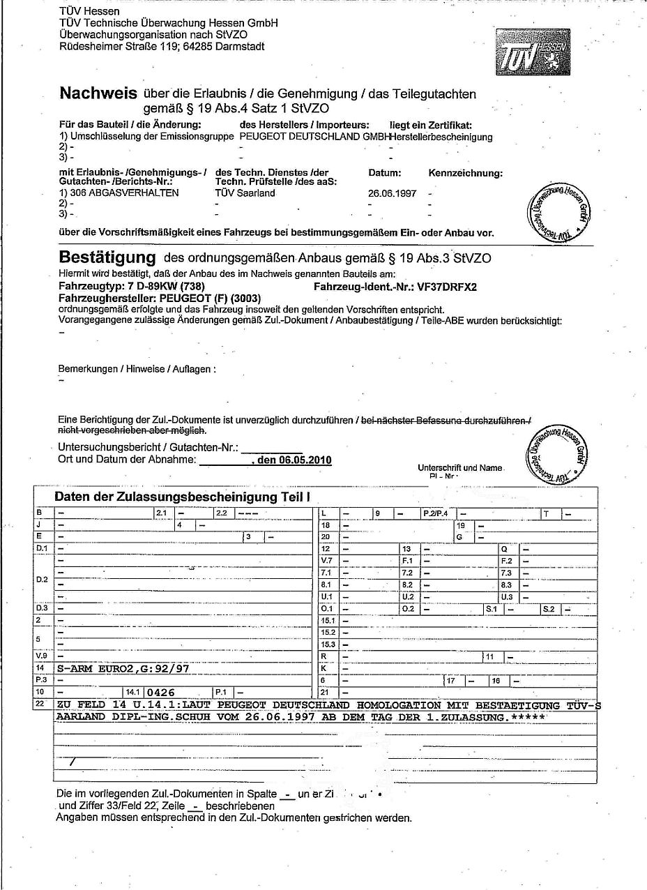 Wollte mal fragen, ob Ihr Erfahrung mit der Umrüstung eines 306 Cabrio, EZ. 3/95, 2.0 auf Euro 2 habt.
