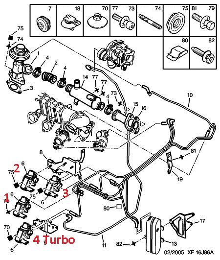 Super danke für die Antworten. Die Turbolader haben doch alle dieses Typische Geräusch, das sich anhört wie ein Pfeifen. Morgen werde ich mal mit dem Mund die Schläuche ansaugen um zu sehen, ob die Membranen in den Unterdruckdosen dicht sind. Dann dachte ich mir das AGR mal still zu legen, um es als Fehlerquelle auszuschließen. Dann prüfe ich mit dem Finger, ob dieser Unterdruck Ausgleichsbehälter (Nr. 13) die Luft durchlässt und ob die Schläuche dicht sind und keine Verstopfung haben. Dann spritze ich etwas WD40 in die Magnetventile und mach die Schläuche richtig fest mit Kabelbinder wieder auf die Magnetventile. Dann schauen wir weiter. Hat noch jemand Tipps oder Verbesserungsvorschläge?