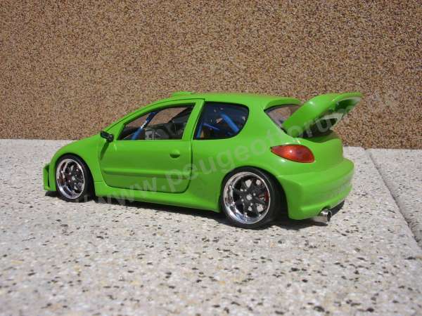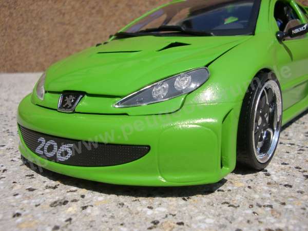 Original ist es ein 206 WRC von Solido (Ma?stab 1:18), er wurde umlackiert, viel gespachtelt und